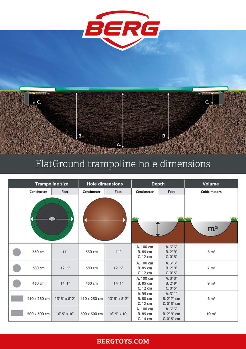 THIS TRAMPOLINE IS NOT ALWAYS IN STOCK WITH US AND CAN OCCASIONALLY BE UNAVAILABLE TO ORDER FROM BERG. IF WE ARE OUT OF STOCK, DELIVERY FROM THE NETHERLANDS CAN BE AS QUICK AS A WEEK. PLEASE CONTACT US BY EMAIL IF YOU NEED THIS TRAMPOLINE IMMEDIATELY AND WE WILL CONFIRM AVAILABILITY.