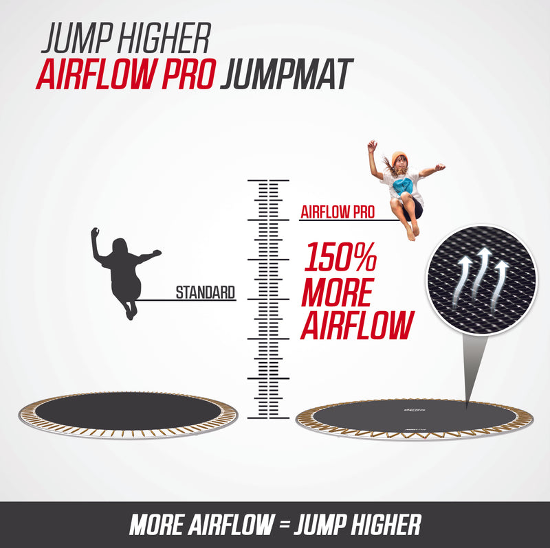 • The AirFlow jumping mat allows 50% more AirFlow. This results in better jumping comfort and higher and more flexible jumping!