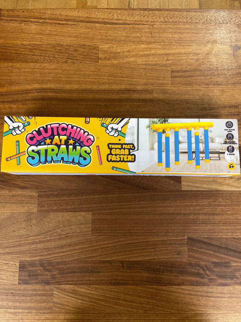 Get ready for a game of quick reflexes and steady hands! Clutching at straws is a fast paced challenge game where the foam straws drop randomly - can you catch them in time? Test your reactions, nerves and coordinatio. 3 speed options - easy, medium and hard.  Includes USB charging cable and rope / hooks for hanging.