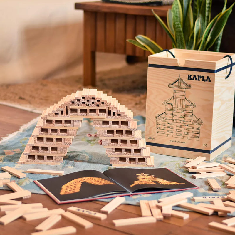 This deluxe wooden display case containing 280 pieces is sold with a Kapla art book of your choice.