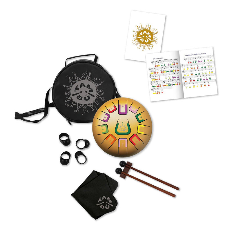 Tambú is an innovative tongue drum designed for all ages. It allows you to create harmonious melodies from the very first moment, with no prior musical knowledge required.